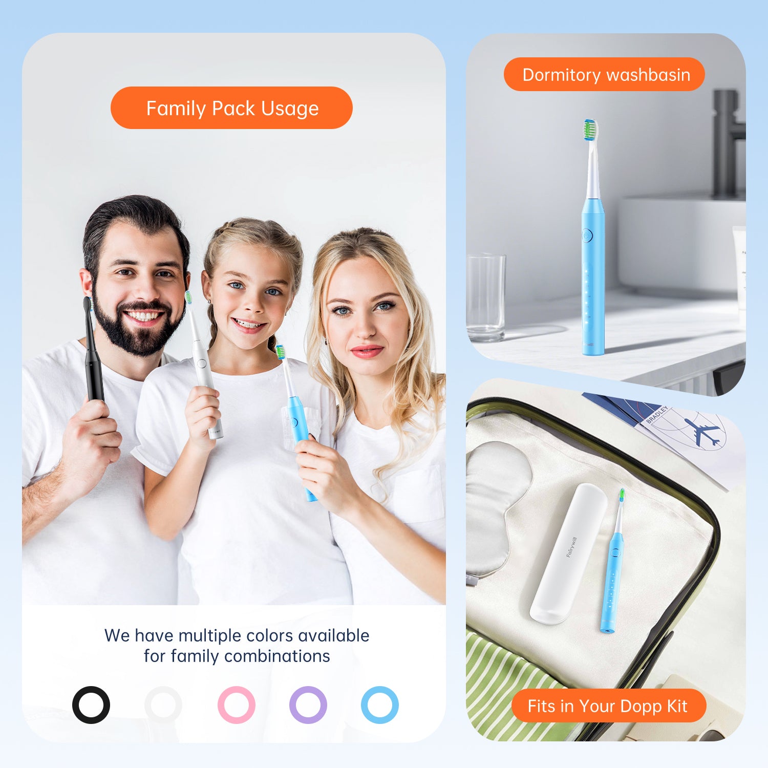 Includes 8 replacement brush heads (a 2+ year supply) + a premium travel case to protect your toothbrush and reduce wear.